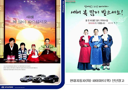 새해 첫 번째 인사말, 기업의 신년광고 헤드라인은 어떤 게 적당할까? 당연히 “새해 복 많이 받으세요”이다. 가장 좋은 사원모집 광고 헤드라인이 “사원모집”이고, 가장 좋은 런칭광고 헤드라인이 “00 탄생”인 것과 같은 맥락이다. 각 기업들의 신년광고 헤드라인에서도 마찬가지다. 현대차는 “가장 좋은” 방법을 선택했다. 밝게 타오르는 새해 일출을 배경으로 큰 절 올리는 한 가족의 밝은 웃음과 함께, 주력차종 쏘나타, 뉴산타페, 그랜저GX로 신년하례를 대신했다. 전통적인 이야기 방식을 택한 것이다. 하이마트의 경우에도 공식은 같다. 대표이사가 직접 사인한 광고에 모델들과 함께 등장하여 “정해년(丁亥年) 돼지띠해, 새해 복 많이 받으세요!”라며 회사를 대표해서 인사하고 있다. 그러나 같은 태양이라고 해도 금호아시아나와 SK로 오면 달라진다. 금호아시아나는 만나야할 사람이 만나서 “서로의 새해”가 된다. 연인처럼, 친구처럼 새해 일출을 바라보는 두 사람을 새식구는 다름아닌 대우건설이라는 “이야기”다. SK의 해가 다르게 보이는 이유는 벌써 여러 해째 목판화의 거친 느낌과 카피중심으로 이야기를 풀어가고 있기 때문이다. 더욱이 헤드라인 “2007년 00일보에는 행복한 이야기만 실렸으면 좋겠습니다”는 둥근 태양의 모습을 하고 있다. 자신만의 이야기 “행복”을 말하고 있다. 게다가 행복한 한 해가 되도록 노력하겠다니 믿어볼만한 이야기다.