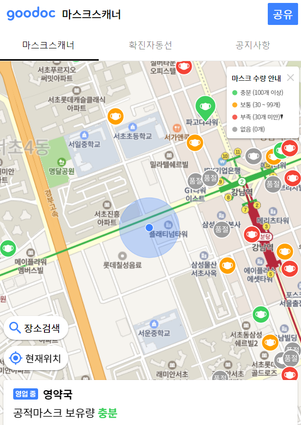 마스크의 실시간 재고현황을 확인할수 있는