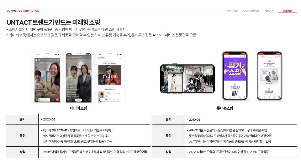 롯데홈쇼핑 - AR-VR 기술을 접목 점원 도움없이 직접 핑거쇼핑으로 살펴보고 구매계획 가능