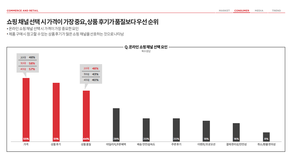 쇼핑 채널 선택의 기준은 무엇보다 가격 > 후기 > 품질 순