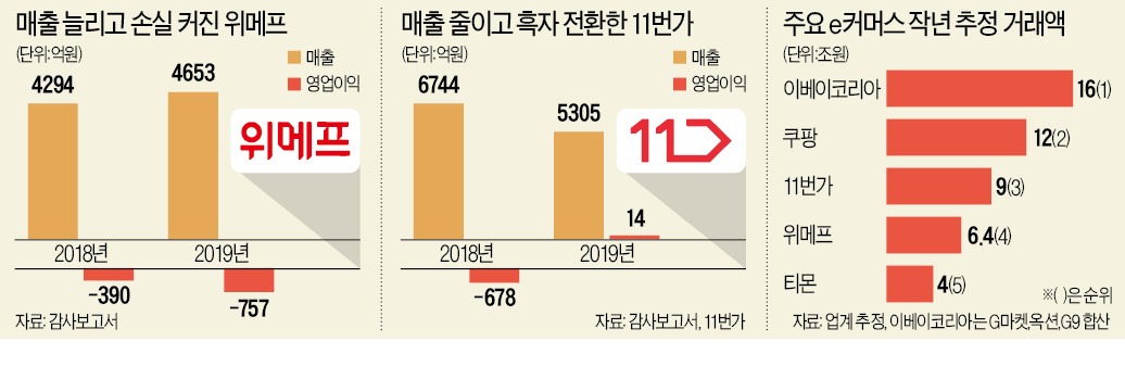 외형 위주의 '아마존 전략'을 고수하고 있는 이베이 코리아, 쿠팡, 위메프는
