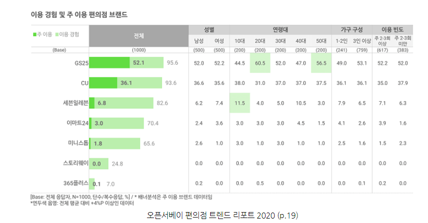 특히, GS25의 적극적인 마케팅 떄문인지 2위 CU와 16% 가량 주이용율의 차이가 나고 있네요