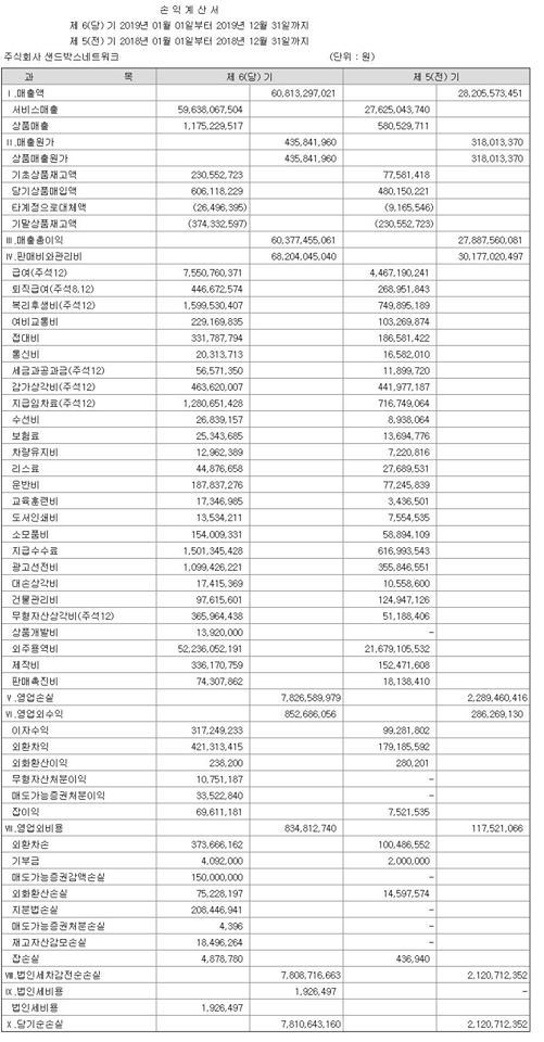 5. 샌드박스게이밍이라는 프로게임구단을 운영중입니다. e스포츠 역시 핫한 업계이긴 하지만.. 국내에서는 아직 수익모델이 정립되지 않아, 각 구단은 수십억원의 손실을 보고 있는 것으로 추정됩니다. 그것이 적자폭 상승에도 기여했을 것으로 예상됩니다..