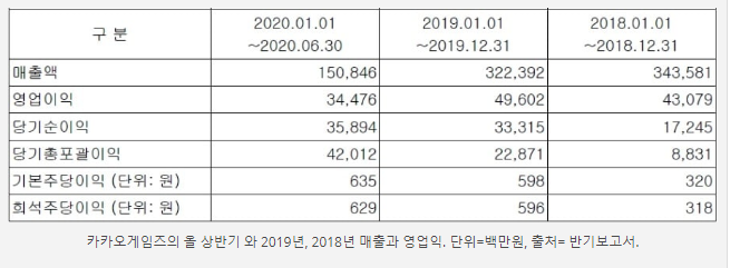 카카오 게임즈의 최근 실적현황