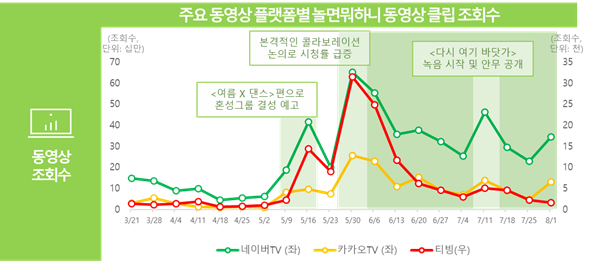 Data Source : 네이버TV, 카카오TV, 티빙 동영상 클립 조회수, 2020.03.21-2020.08.01