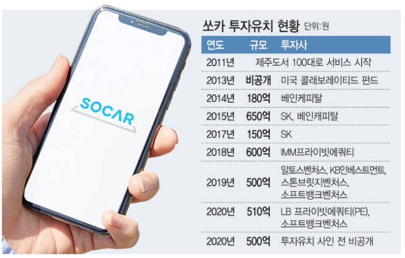 | 쏘카, 500억원 추가 투자 유치, 12번째 유니콘 등극 |
