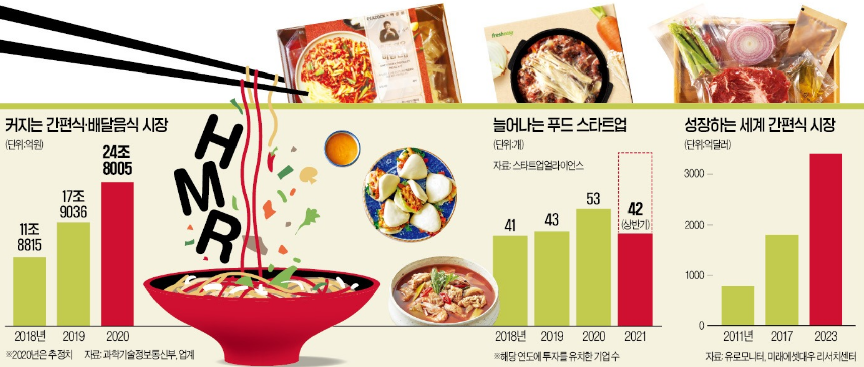 홈메이드 집받은 퇴장, 간편식 배달음식시장이 점차 커져....