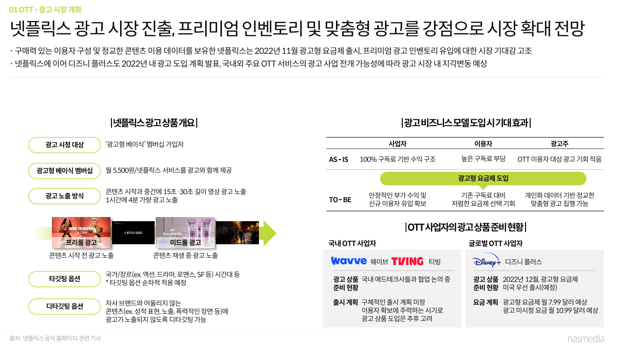 OTT 활성화 및 넷플릭스의 광고 시장 진출로 인한 광고시장 내 지각변동 예상