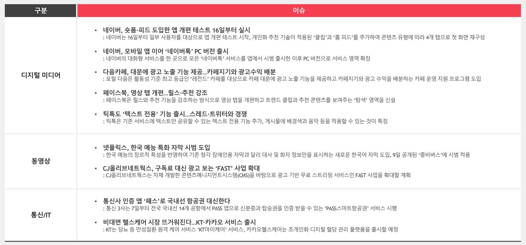 -------------------------------------------------------<8월 미디어&마켓 이슈>-------------------------------------------------------