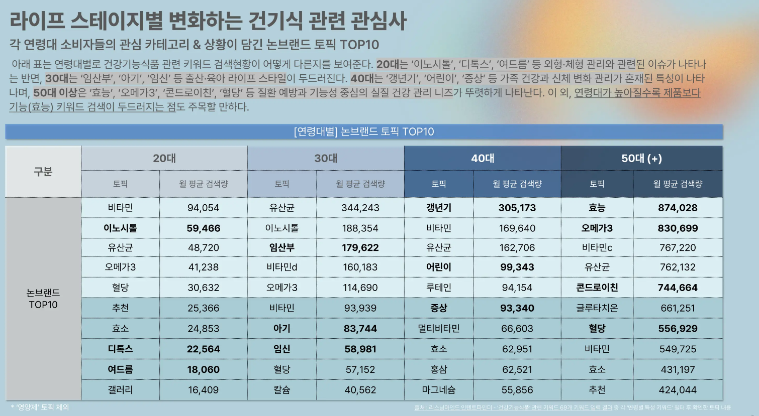 - 특정 상황·고민: 갱년기 관련 검색이 421,526건으로 나타났습니다.